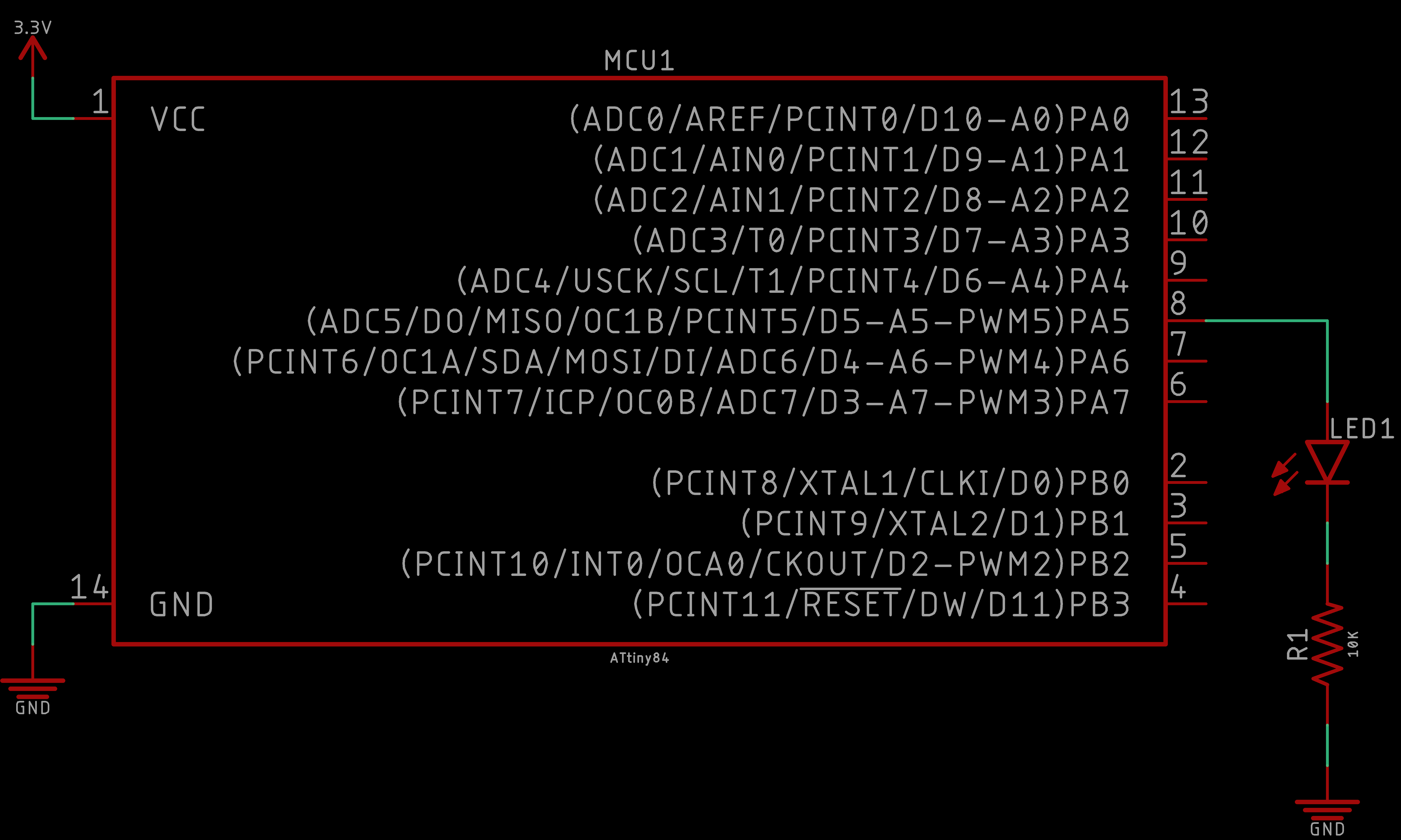 And that is it! Your ATtiny84 should be blinking an LED. This was a trivial example, but it is the first stepping stone to making more interesting functionality.