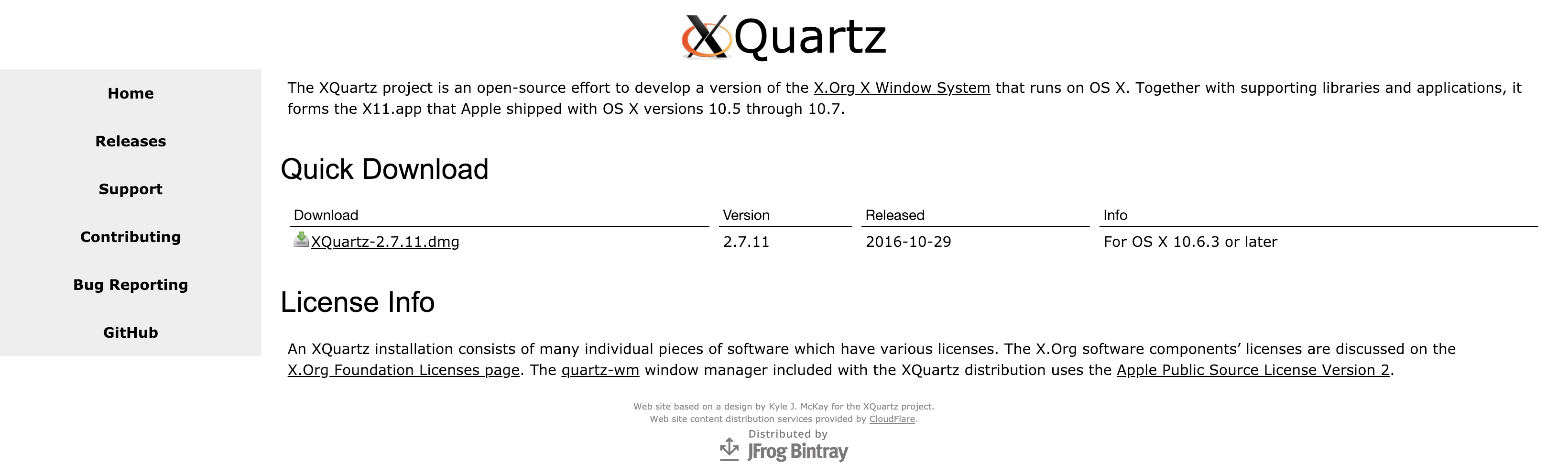 Click to download the latest version of XQuartz. At the time of this writing it is: v2.7.11.