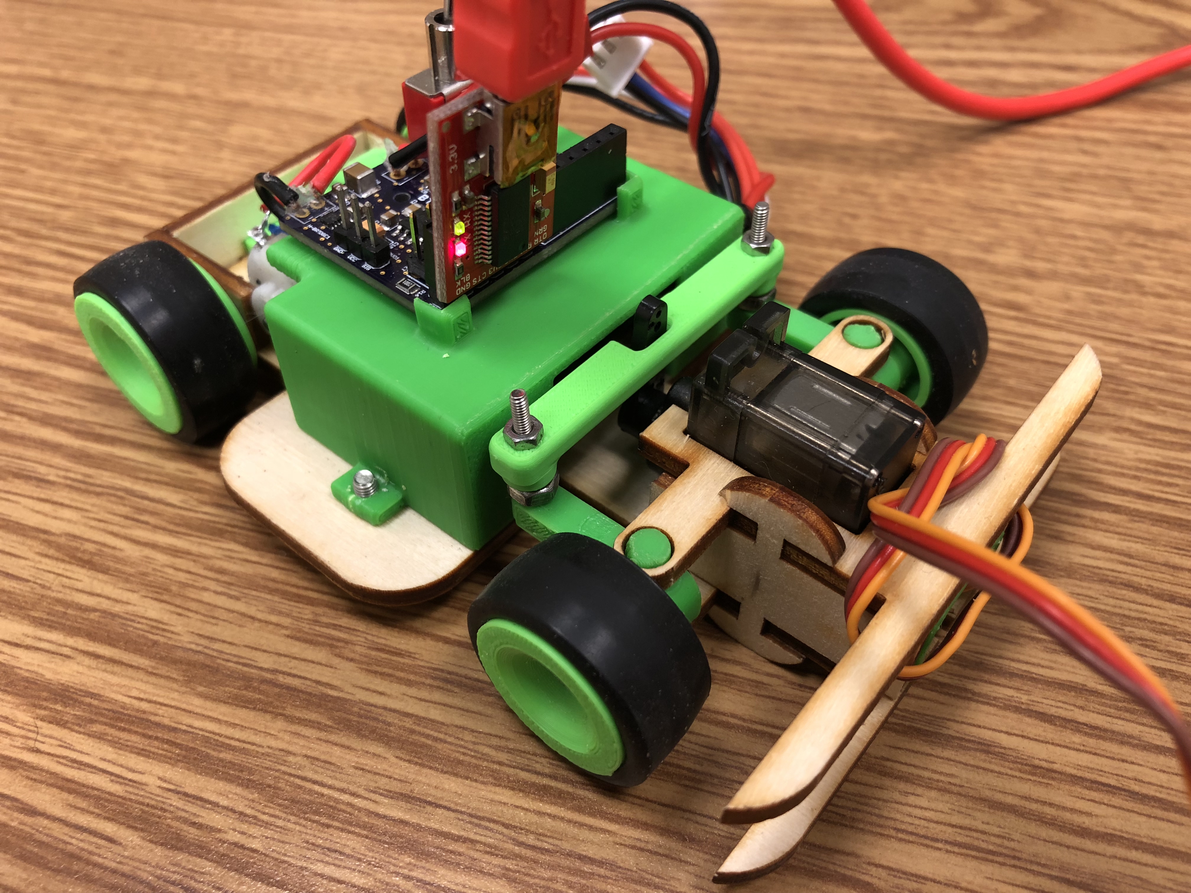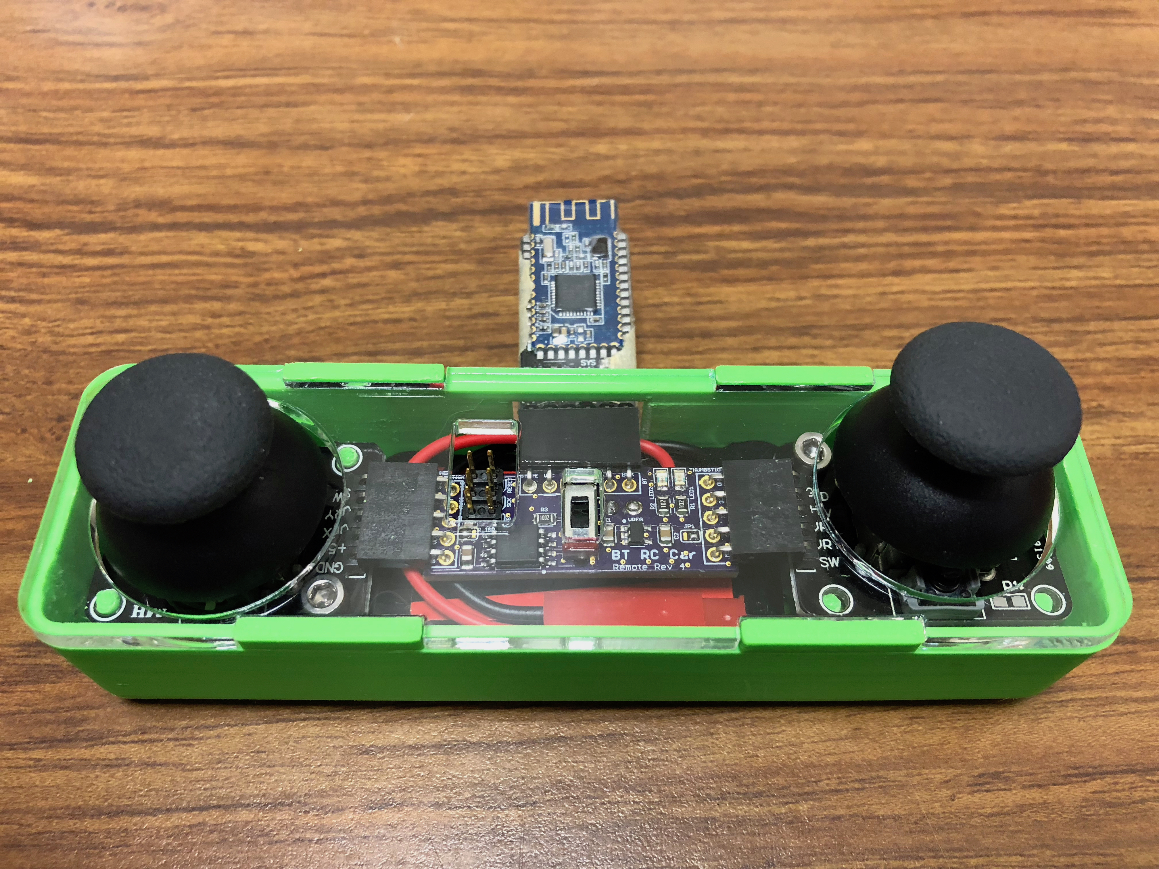 The bluetooth remote control car (BT RC Car) is a wirelessly controlled remote control vehicle. Unlike most remote control (RC) cars you can buy from a hobby store, this RC car can be built from scratch - that is, both the vehicle AND the remote! It is quite zippy, and the handling is decent. However, it is limited in terms of terrain - not recommended for slopes or outside in general. But it is great to keep at your desk or office, to entertain your cats (:3), and for educational purposes. We teach a ton of concepts that go into creating our BT RC Car! How to communicate from device-to-device (e.g. Arduino to Arduino) using a bluetooth module, how to CAD - both PCB and 3D model - your car, programming AVR microcontrollers, and general prototyping circuitry.