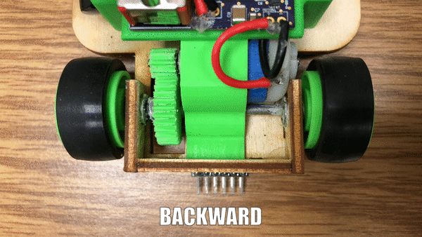 We demonstrate running the motor to strip some of the poorly printed 3D printed gears. At this stage of the assembly and after, we recommend running the DC motor with various voltages (up to a MAX of 7.4V) using a DC power supply to smooth out the gears. We recommend approximately 10 minutes or until the back-wheels move relatively smoothly when spinning the back-wheels with your hand (and feeling minimal resistance).