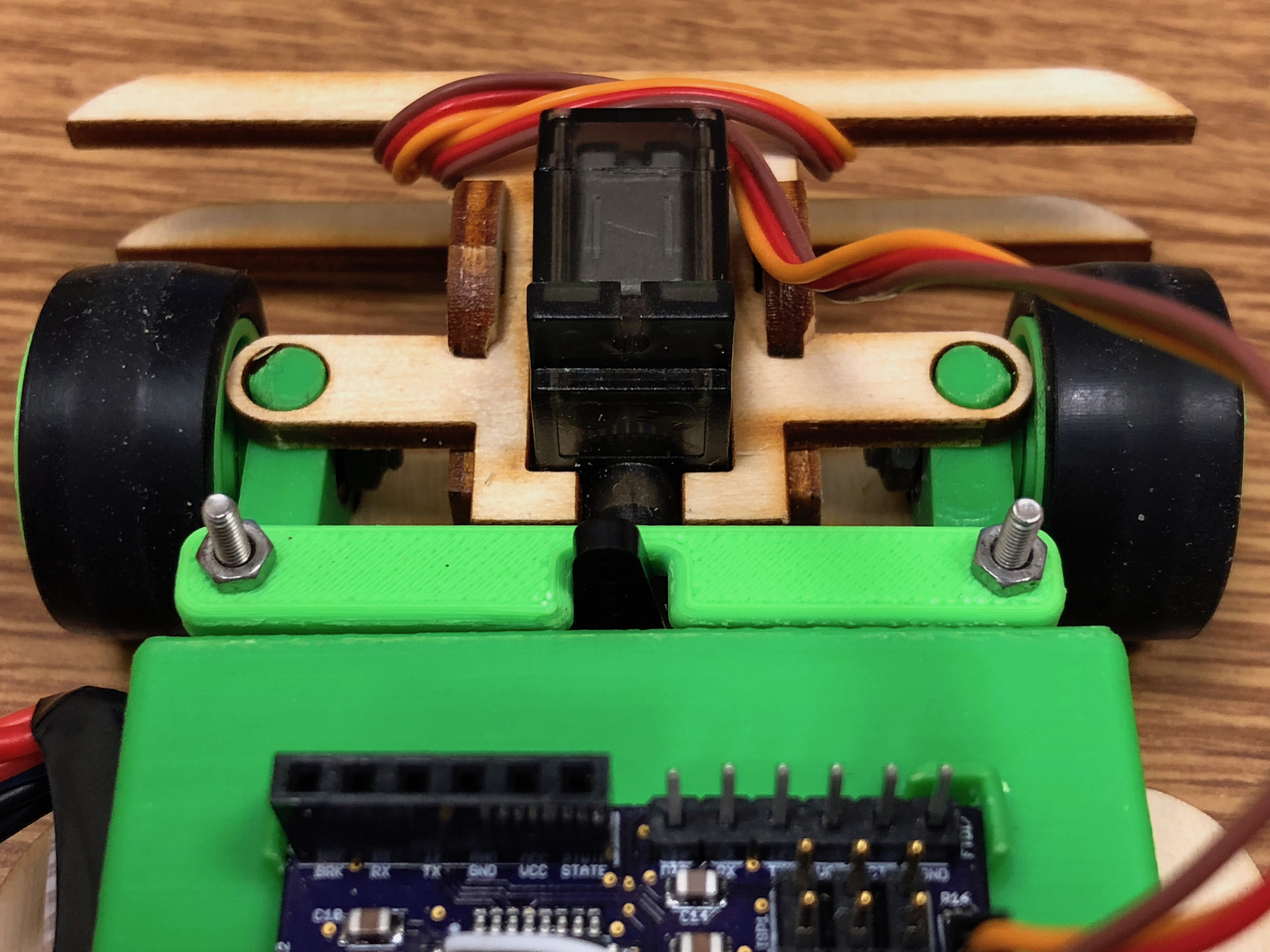 Next, we will perform servo calibrations. After all we want the car to go as straight as possible without actuating the steering thumbstick. However, some servos with the horn attached, even written at 90 degrees will not be perfectly centered. Even with this calibration it might not be perfectly centered - however, we will do our best to center it. Other reasons for non-perfect straight movement depends on the wheels, some imperfections in the wheels, 3D printed parts, and laser cut pieces.