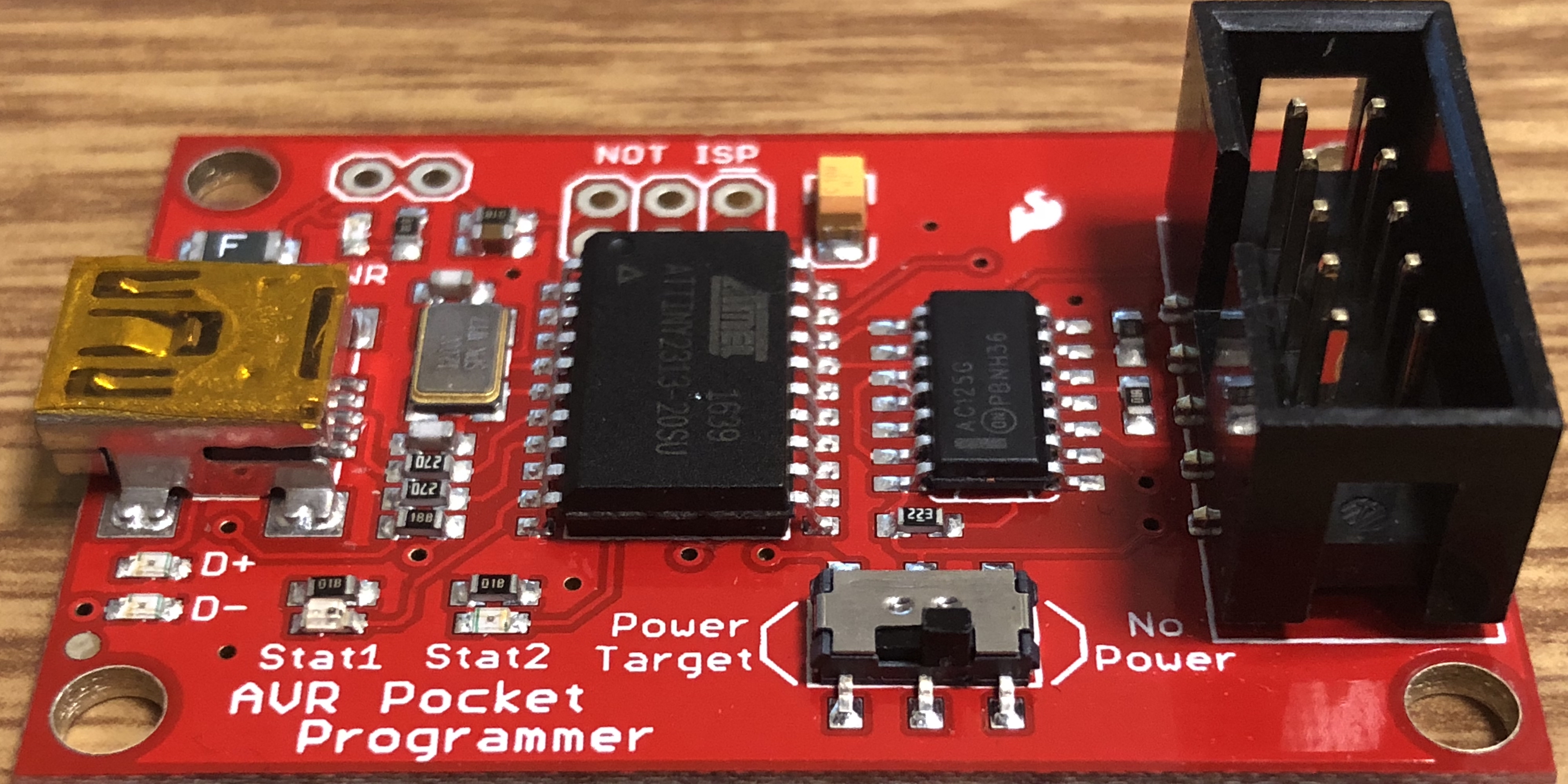 | [Optional] POCKET AVR PROGRAMMER | Digikey | 1 | Used to bootload AVR microcontrollers. |