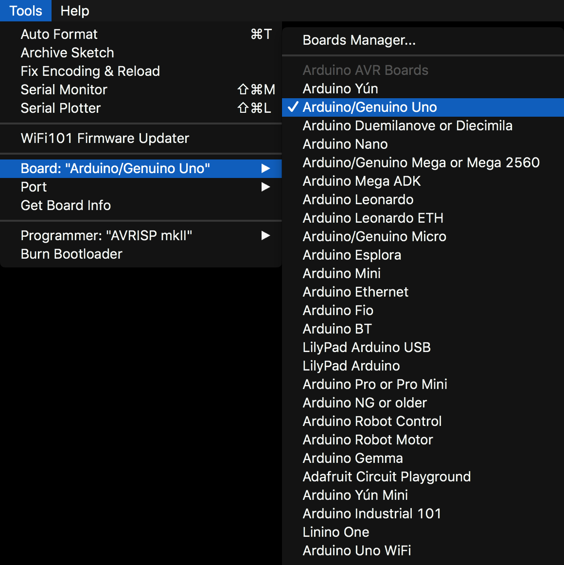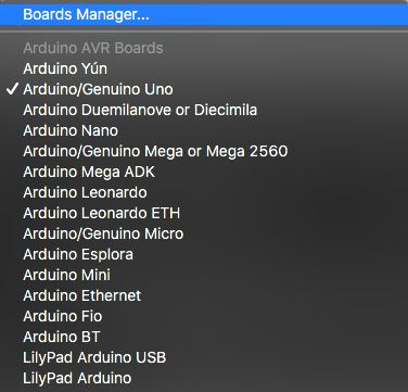 With the appropriate AVR microcontroller core installed, we can explore the board settings for these microcontrollers.