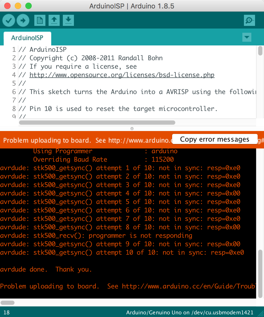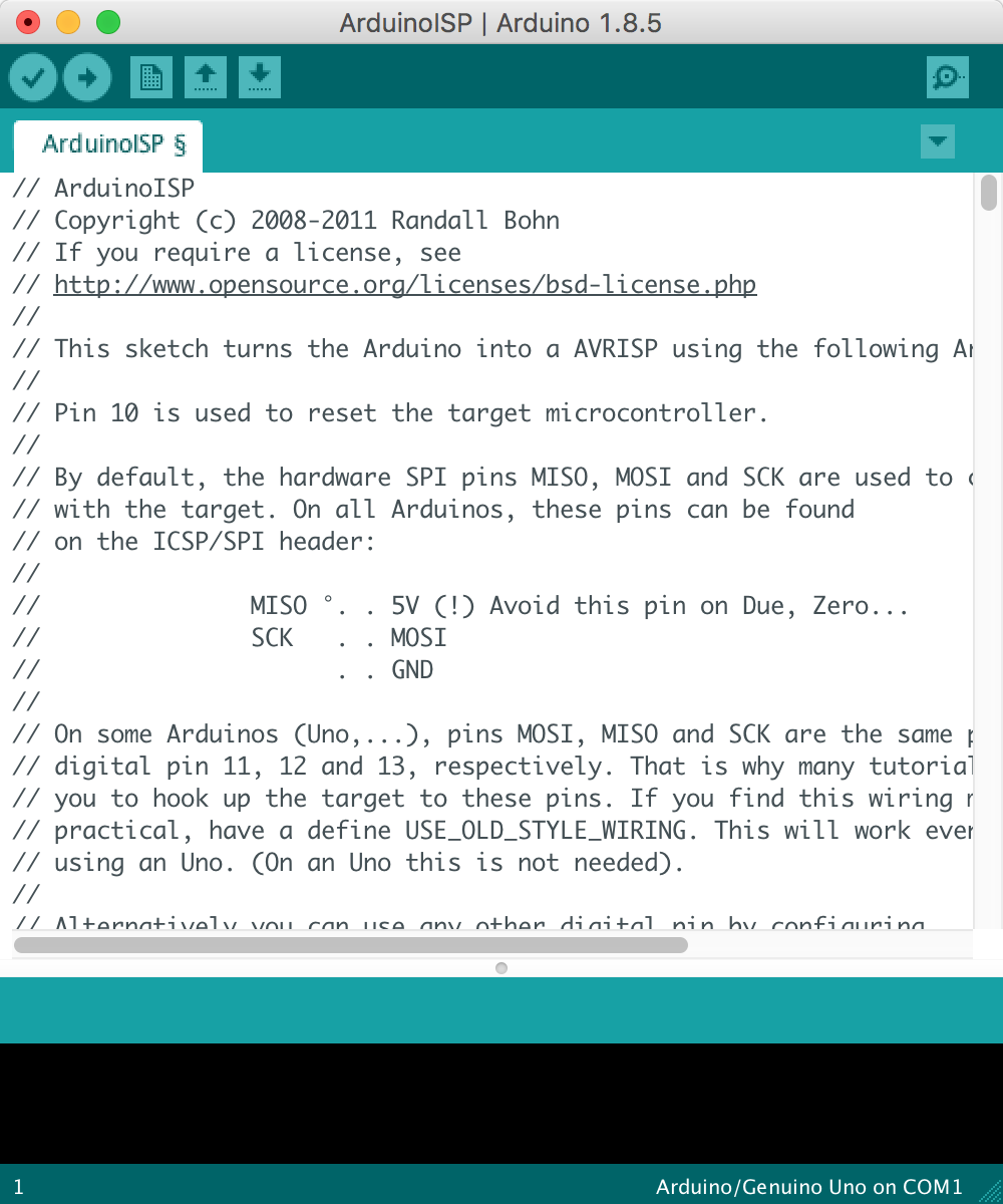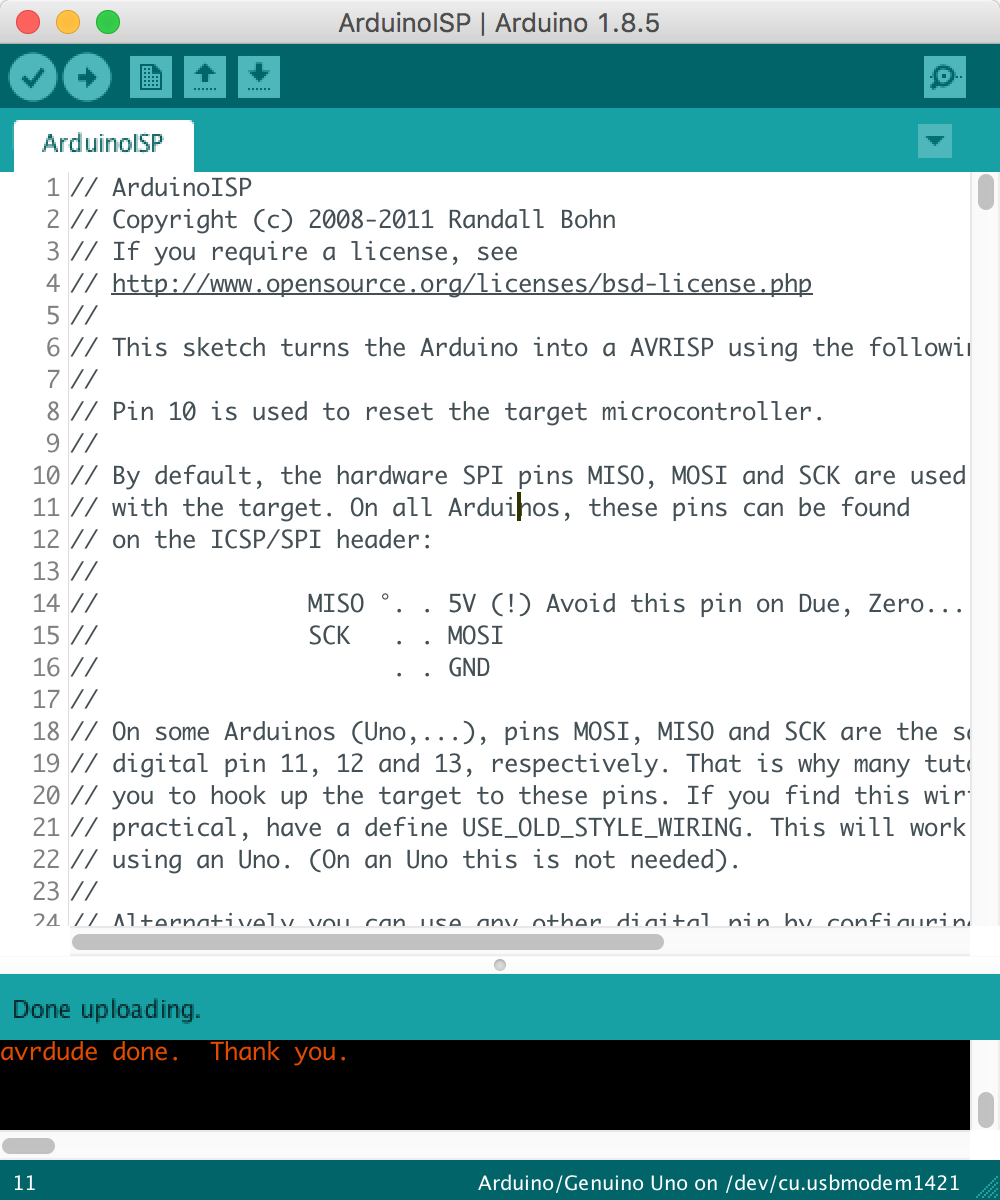 Finally, you can upload the ArduinoISP sketch to the Arduino UNO.