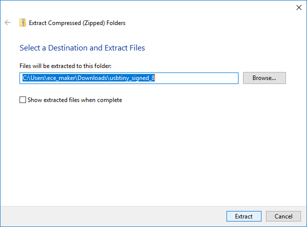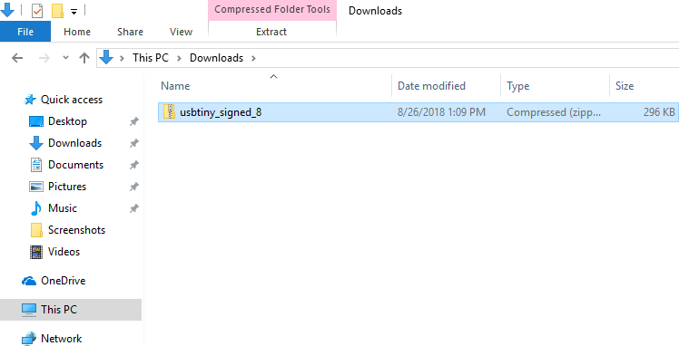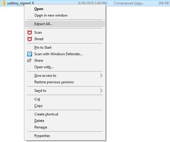 Right-click on the usbtiny_signed_8.zip file and click on Extract All....
