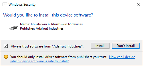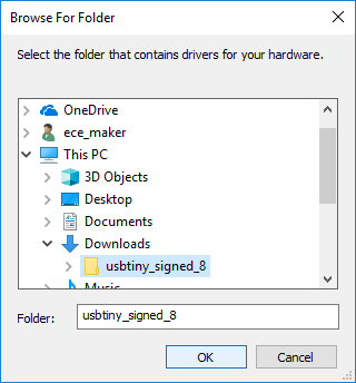 Click the following link to download the Windows USBtinyISP signed driver provided by Adafruit Industries.