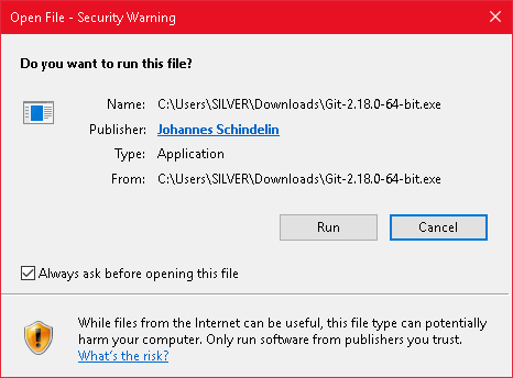 After launching the installer you may be prompted a couple times. The first is a security warning: