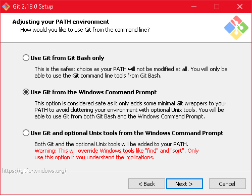 Adjusting PATH environment. We recommend NOT using git in the Windows Command Prompt and to use git exclusivly with Git Bash.